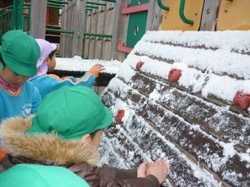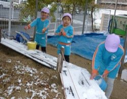 2018年01月12日 1月 雪遊び 1月11日(木)佐世保市でも薄ら雪が積もりました。 普段あまり雪を目にすることのない子ども達は大はしゃぎで園庭に飛び出しました。 ベンチや遊具に積もった雪を、手を真っ赤に染めながら集めたり、雪投げをしたりして思い思いに雪遊びを楽しんだ子ども達!! かわいい雪だるまも沢山できました。 古い記事一覧新しい記事