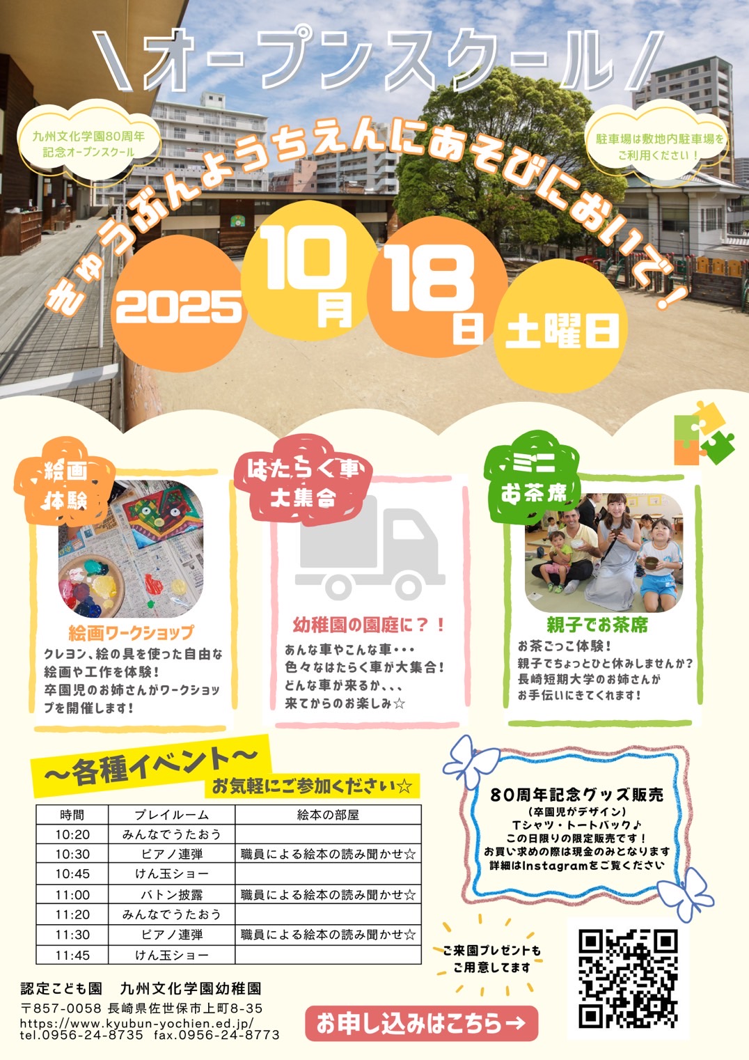 2025年10月18日(土)9:00より「九州文化学園80周年記念オープンスクール」を開催いたします。