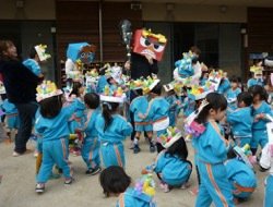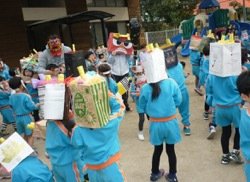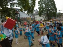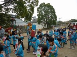 この日に向けて各自で製作したお面を被り園庭に集合!