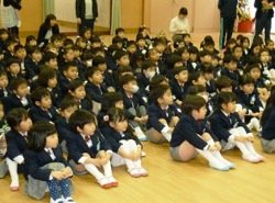 みぞれ交じりで寒い中の登園でしたが、皆笑顔で顔を合わせた先生や友達に年始の挨拶をしていました。