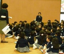始業式では、2名の子ども達が代表で、冬休み中に家庭で行ったお手伝いを発表しました。
