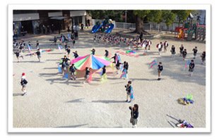 12月とは思えない、お天気に恵まれ園庭で年長さんのお父さん・お母さんと一緒に