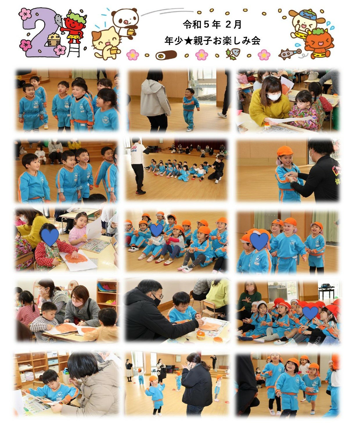 2023年02月20日 2月 幼児部 年少 年少★親子お楽しみ会 今年度最後の親子でのお楽しみ会が実施となりました。子ども達はお家の人がいることに大張り切りで、活動を楽しむ姿が見られました! 古い記事一覧新しい記事