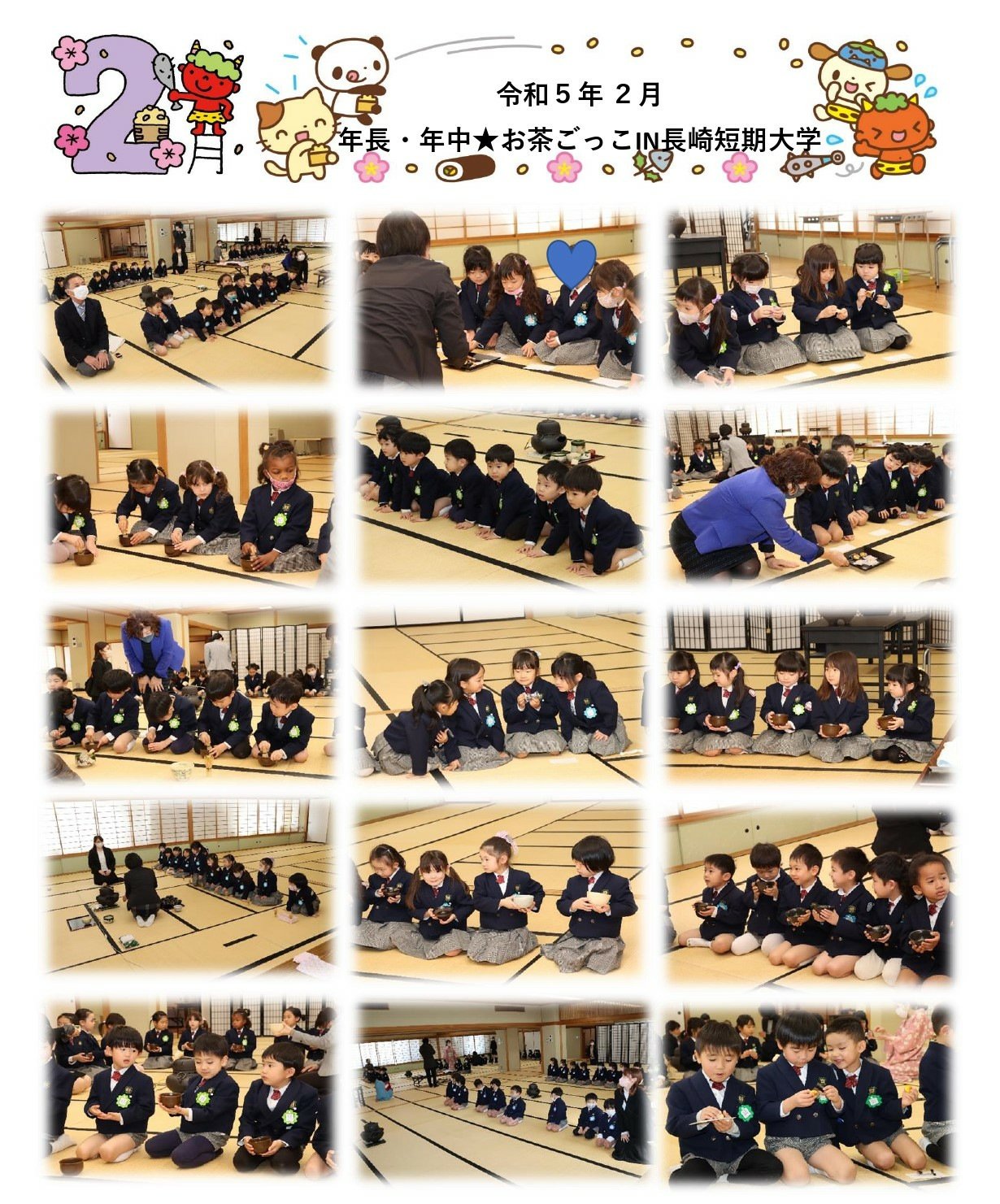 2023年02月14日 2月 幼児部 年長 年中 年中・年長★お茶ごっこIN長崎短期大学 年中さんは1年間、年長さんは2年間幼稚園で茶道を学びました。この日は長崎短期大学のお茶室で、実際に茶道での学びを振り返りながらお茶をたてたり、飲んだりして活動を楽しみました🎵 古い記事一覧新しい記事