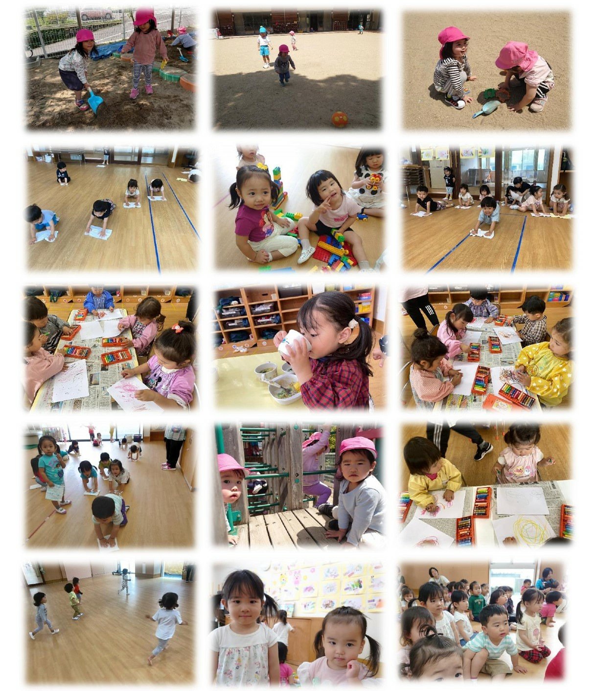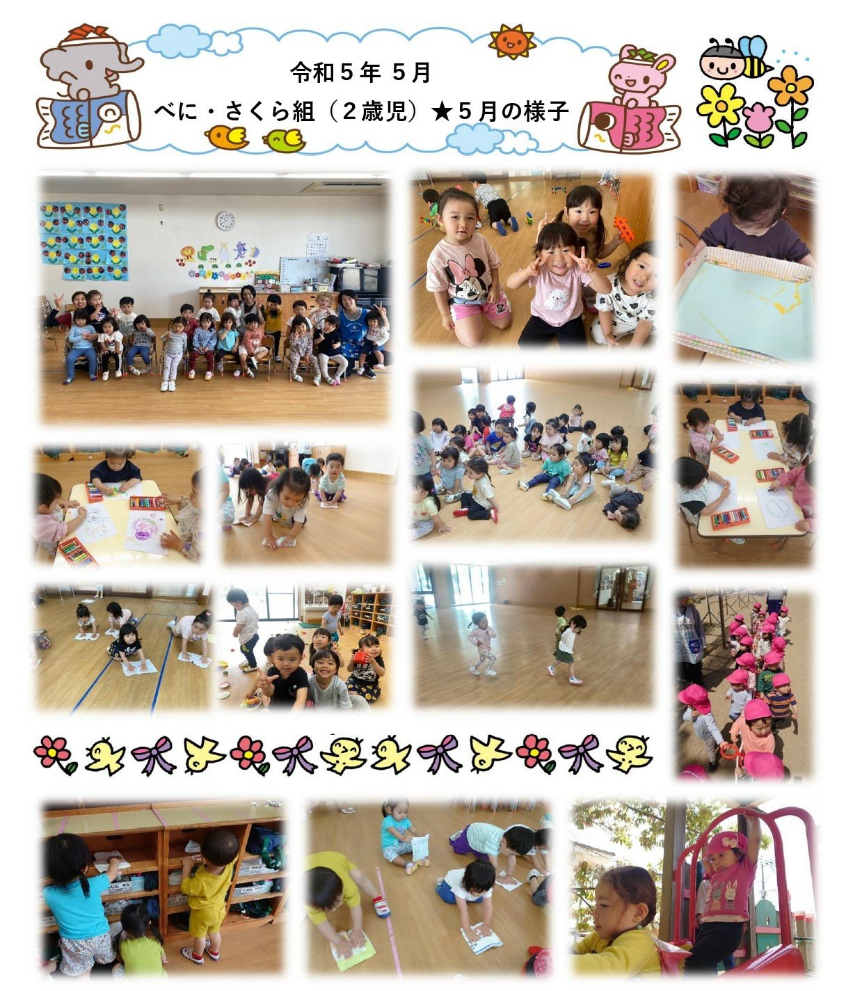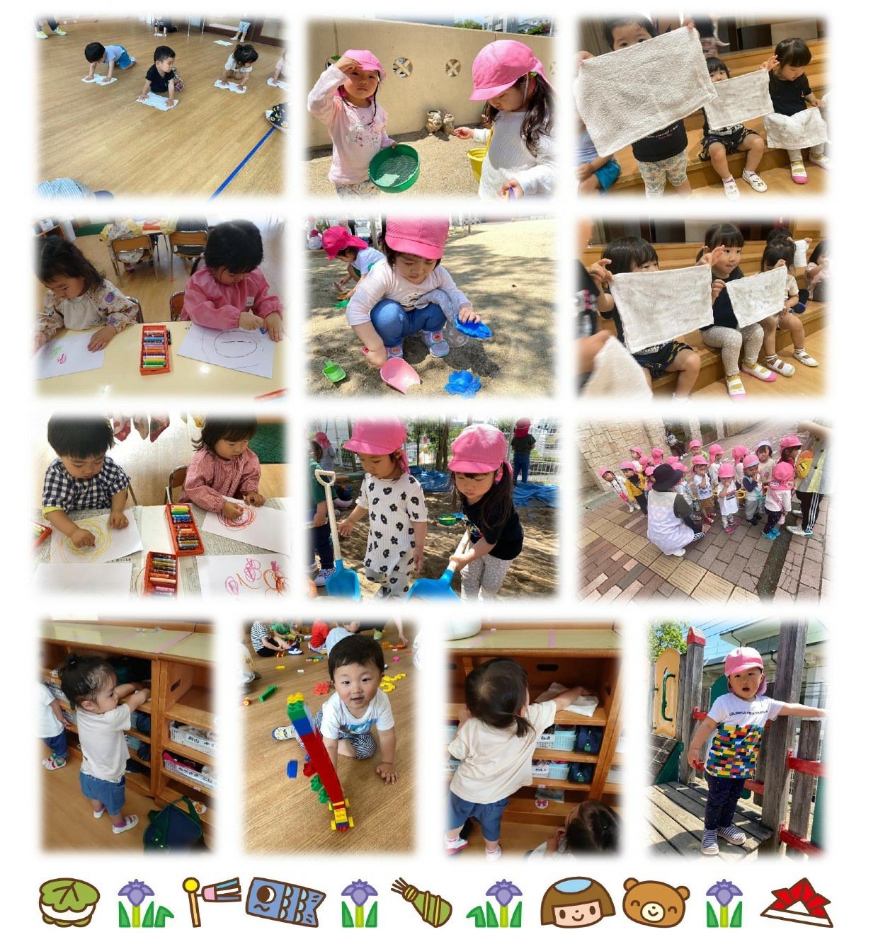 2023年05月31日 5月 乳児部 べに組 さくら組 べに・さくら(2歳児)★5月の様子 べに組、さくら組の5月の様子をお届けします。今月は涼しく過ごしやすい気候で、子ども達は沢山外遊びを楽しんだり、製作活動を行ったりと沢山の活動を楽しみました★6月も子ども達と沢山の活動を楽しみながら、笑顔で過ごしたいと思います。 古い記事一覧新しい記事