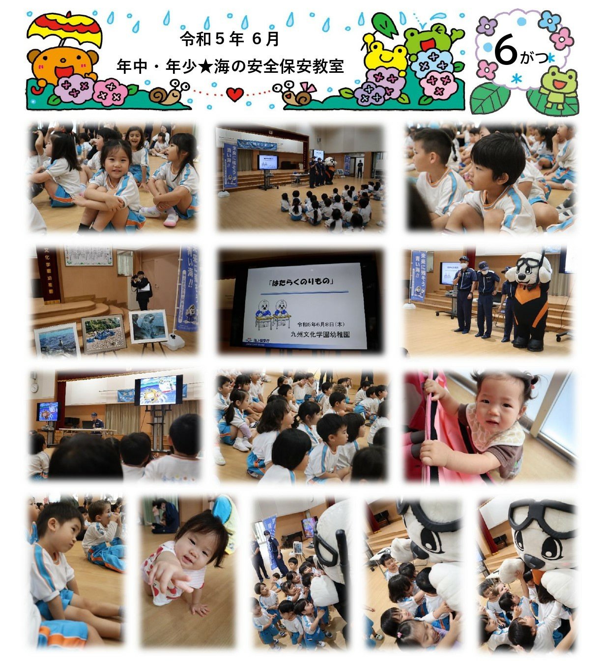2023年06月08日 6月 幼児部 年中 年少 年中・年少★海の環境教室 今日は佐世保市の海上保安庁による海の環境教室が実施されました。子ども達は紙芝居やクイズなど熱心に耳を傾け、海を守る大切さを学ぶことができました。佐世保市海上保安庁の皆様、ありがとうございました!! 古い記事一覧新しい記事