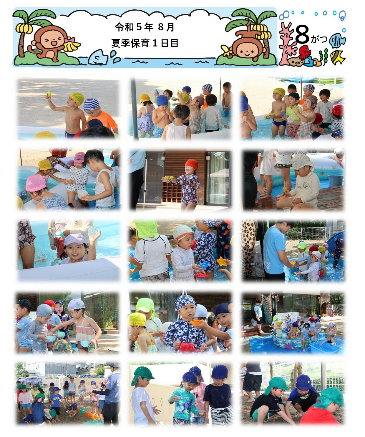2023年08月21日 8月 幼児部 年長 年中 年少 幼児部★夏季保育1日目 夏季保育が始まりました!子どもたちが楽しめるような催しを沢山準備したいと思います💛1日目は年長さんはどろんこ遊び、年中さんは鮮鼓堂へお出かけしました。年少さんはプール遊びを楽しみました! 古い記事一覧新しい記事
