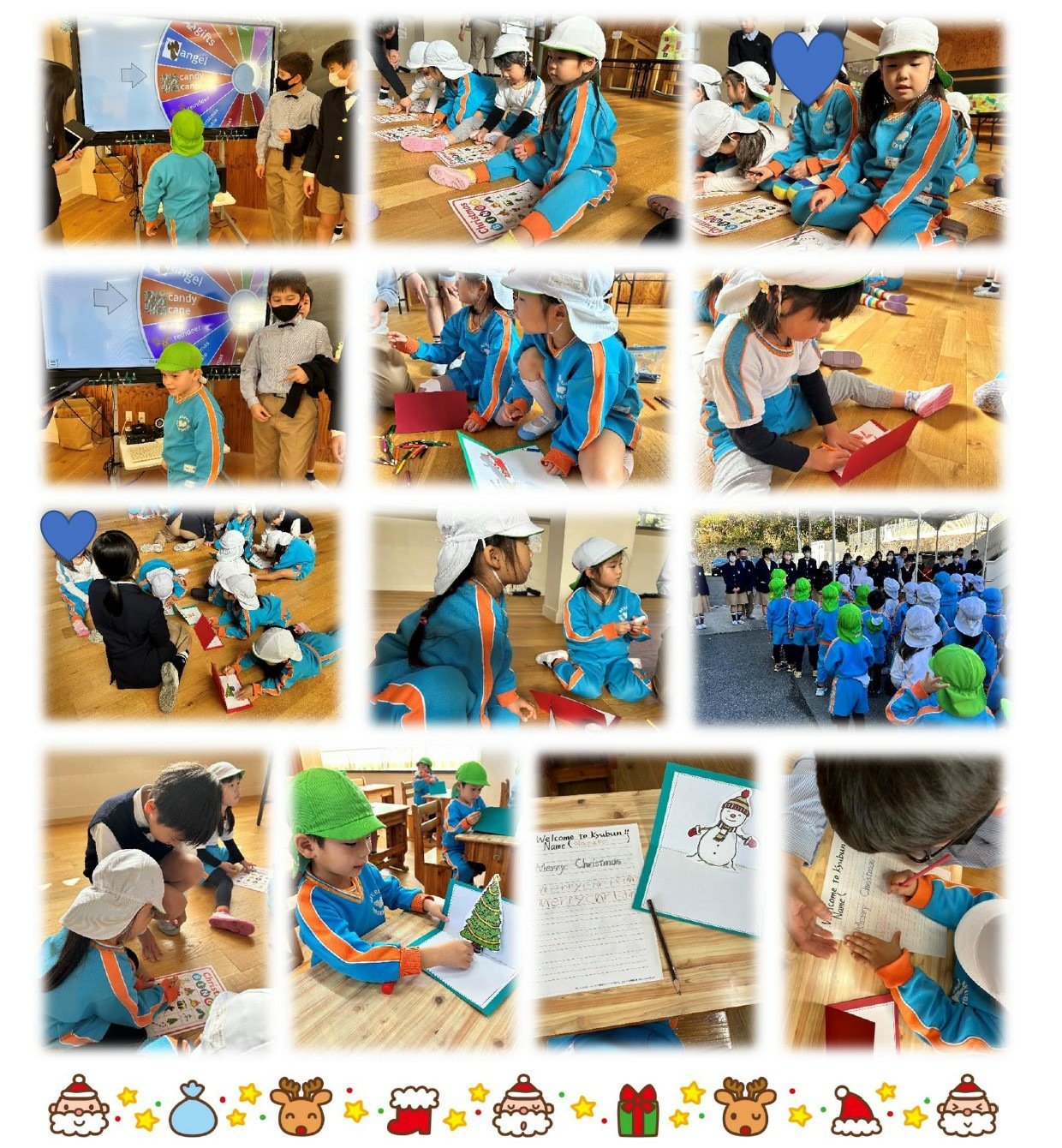 2023年12月13日 12月 年中 年中★英語交流会 九文小学校の5年生徒との英語交流会を行いました!!名前のつづりや、ビンゴゲームのやり方など優しく教えてもらいました★ 次はぜひ幼稚園にも遊びにきてください☺!! 一覧新しい記事