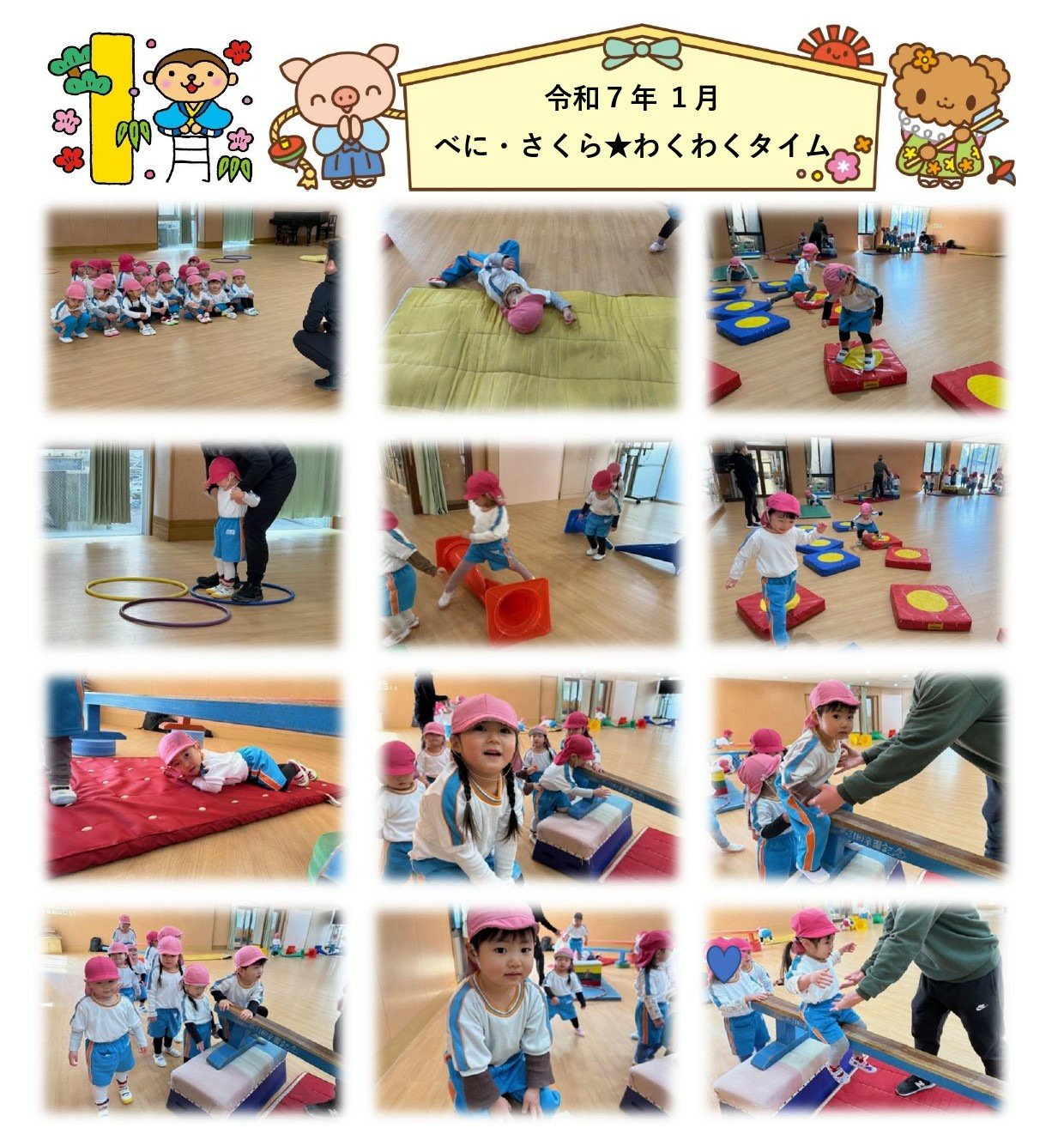 2025年01月31日 1月 乳児部 べに組 さくら組 べに・さくら★わくわくタイム 今日は満2歳児のべに・さくらさんが初めてのわくわくタイムに参加しました!サーキット形式でたくさん体を動かして遊びました🎵 古い記事一覧新しい記事