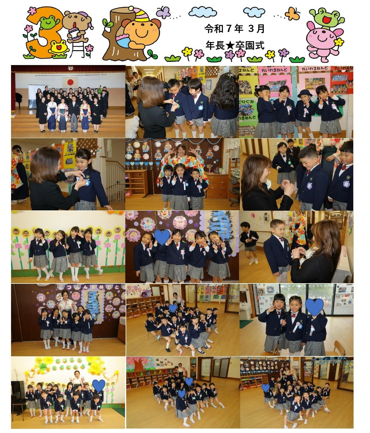 2025年03月15日 3月 幼児部 年長 第76回卒園式 3月15日(土)本園の第76回目の卒園式を行いました。子どもたちは立派な表情で園長先生から証書をもらい、4月からの新しい生活に期待感を膨らませているようでした。4月からもそれぞれの環境で、頑張ってほしいと思います💛 古い記事一覧新しい記事
